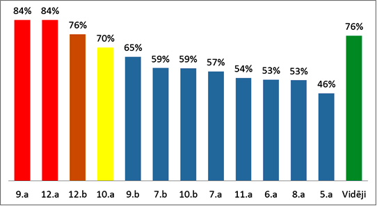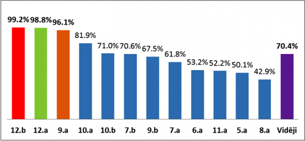 Savukārt mēneša rezultāti ir vēl interesantāki. 9.a un 12.a klasēm ir vienāds izpildes rādītājs, lai gan, raugoties uz cipariem pēc komata 9.a klase ir veiksmīgāka par 0,002%! Ar to arī apsveicam gan 9.a klasi, gan pārējos skolēnus, kuri piedalījās konkursā septembra laikā! Lai veicas arī turpmāk!