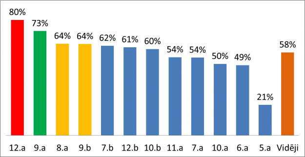 Aizvadīts I Aktualitāšu konklurss; klašu sacensībās iztiekts līderis; 10 skolēniem – 100% izpilde