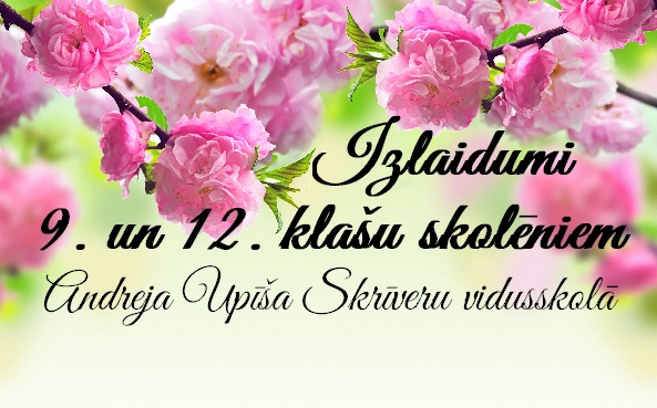 Andreja Upīša Skrīveru vidusskolā izlaidumi notiks šādos laikos: