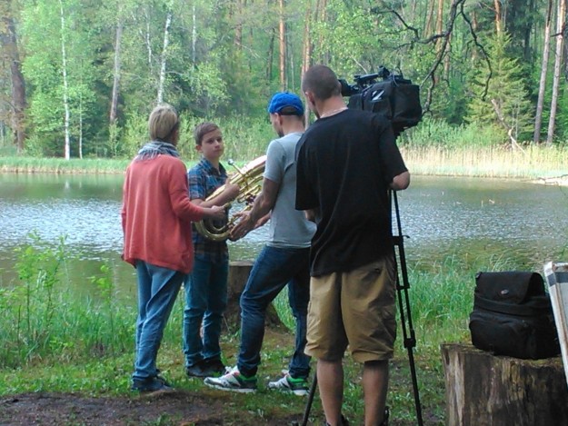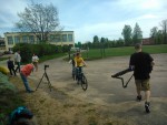 “Gudrs vēl gudrāks” filmēšanas grupa filmē skolā