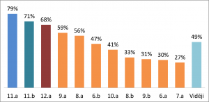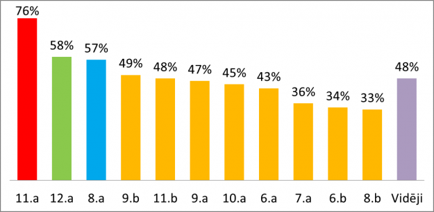 Skolēnu sekmju progresa konkursā Mēs varam labāk! sākas pēdējais sacensības mēnesis. Šodien paziņojam konkursa aprīļa rezultātus. Raugoties uz konkursa aprīļa rezultātiem, vairākas klases ir atkārtoti iekļuvušas topā. Sekmju progresa līderi aprīlī: klases, kuras sasniegušas lielāko progresu (%) sekmju vērtējumos, salīdzinot ar 1. semestra noslēguma vērtējumiem: 8.klašu grupā 1.vieta – Rīgas Franču liceja 8.a klasei – 4.108%, (Rīgā), 2.vieta – Andreja Upīša Skrīveru vidusskolas 8.a klasei – 3.820%, (Zemgales reģions) un 3.vieta – Rīgas Valsts 3. ģimnāzijas 8.c klasei, 3.563% (Rīga).