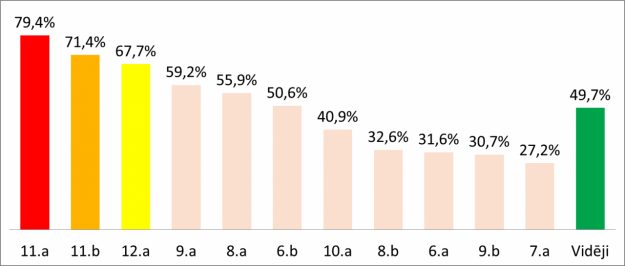 Aizvadītajā mēnesī notikušajos konkursos skolēni kā ierasts apliecināja savas zināšanas visplašākajā aktuālo norišu spektrā, sākot ar aktuālo politikā, ekonomikā un kultūrā, tā arī sportā un vietējās norisēs. Apkopojot mēneša rezultātus redzam, ka vidusskolas klases šajā mēnesī ir izrādījušās spēcīgākas kā pamatskolas klases. Tāpat īpaši jāuzslavē 22 skolas skolēni, kuri ieguva kādu no godalgotajām vietām. Pārējie rezultāti redzami diagrammā!