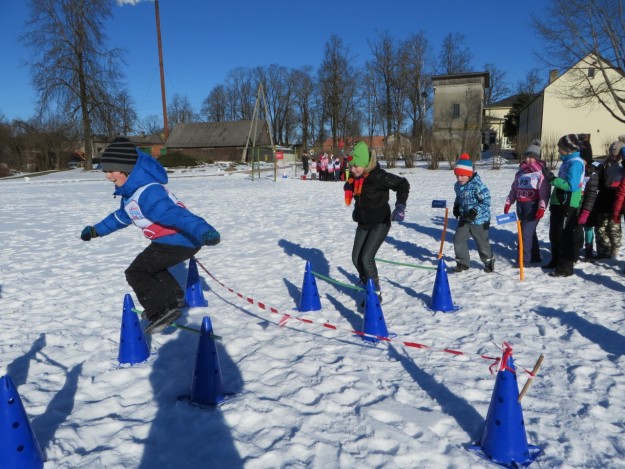 Pasākums risinājās divās kārtās. Pirmajā kārtā startēja 1.-4. klašu skolēni. Sacensības notika 6 pozīcijās: mešana mērķī, sniega ainavas veidošana, ragaviņu vilkšana, slēpošana, lekšana pāri barjerām, šļūkšana no kalniņa ar plēvēm. Katrai klasei bija uzdevums iziet visus kontrolpunktus un izpildīt uzdevumus. Skolēni veiksmīgi tika galā ar uzdevumu un nopelnīja sertifikātu par piedalīšanos pasākumā.
