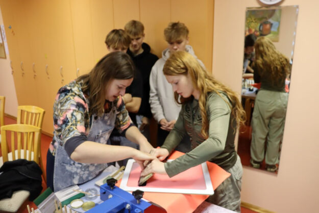 Meistarklasi vadīja brīnišķīga māksliniece Ilva Lejiņa (zīmols „Apdrukā pats”). Jāatzīmē, ka skolēni bija sagatavojuši arī mājas darbu – iepriekš izdomājuši vienotu pašpārvaldes logo. Tieši šis logo ir kā vienojošais elements. Spilveni kalpos kā praktisks un dekoratīvs elements jaunajai pašpārvaldes telpai.