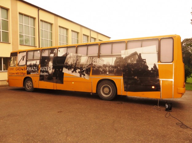 Piektdien, 12.septembrī, skolas 8., 10., 11. un 12. klašu skolēniem vēstures stundas notika neierastā vietā – autobusā. Atsaucoties Barikāžu muzeja aicinājumam, skolas skolēniem bija iespēja apmeklēt nodarbību “Barikāžu laiks”. “Muzeobusā’’ varējām aplūkot dažādas fotogrāfijas, video no barikādēm. Gide mums stāstīja un rādīja bildes par PSRS, par Baltijas ceļu, M.Gorbočovu (Padomju Savienības ģenerālsekretāru un pirmo (un arī pēdējo) prezidentu) un citām personām, par Tautas Fronti, un protams vēl daudzas citas interesantas nianses par Atmodas laiku.