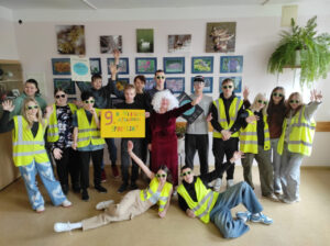 Jau tūlīt pēc “Če Če čempionāta” izziņošanas ķērāmies pie darba, lai tāpat kā pagājušajā gadā tiktu fināla pasākumā. Mūs aizrāva kopīgā fotografēšanās un karoga izveide, uzdevumu veikšana par krāpšanu internetā, atkritumu šķirošanas akciju un plakātu veidošanu ar Mākslīgā intelekta palīdzību.