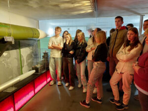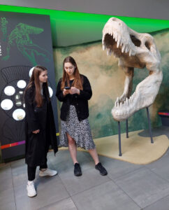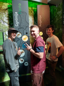 Pirmais apskates objekts bija Ventas reģionālā parka apmeklētāju centrs, kurā iepazināmies ar informāciju par parku, atrastajām fosilijām, vērojām dinozauru maketus un interaktīvi varējām klausīties putnu, dzīvnieku balsis. Noslēgumā mums bija lieliska iespēja klausīties centra darbinieka Ramunas stāstījumā par pieredzi, kā fosiliju meklēšana kļuva par viņa hobiju. Jutāmies īpaši, jo gide atklāja, ka parasti Ramunas savu plašo kolekciju centra apmeklētājiem nerādot.