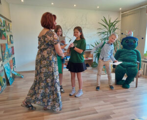 23.maijā Skrīveru Bērnu bibliotēkā uz Skaļo lasīšanu pulcējās 5. klases skolēni: Agnese Bērziņa, Samanta Svešņikova, Madara Ērika Rikmane, Adele Babre, Sabīne Rūze, Kinga Īžo, Enija Kokina un Raivis Lapiņš.