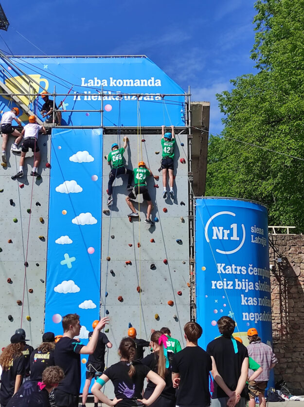 Kā pirmo veicām kāpienu klinšu sienā, tad sekoja stafešu uzdevumi: uzvelkot speciālas piepūšamās bumbas, bija tās jāizripina pa noteikto maršrutu uz ātrumu. Tad sekoja stafete, kurā bija jāpārvar dažādi šķēršļi un jāatbild uz jautājumiem par atkritumu šķirošanu.