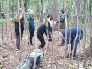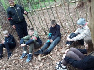 Mums tika uzdoti trīs galvenie uzdevumi, katram uzdevumam bija savs instruktors. Pie Bambaleila bija neliela Tarzāna trasīte, pie Koka Gultas bija jāatpazīst un jāattēlo dzīvnieki, bet pie Shakiras bija jāizspēlē “izlaušanās” -bēgšana mežā. Beigās mēs iejutāmies policista, sabotiera un rūķa lomās. Pēc spēlēm visi cepa desiņas un ēda maršmelovus. Protams, vajadzēja arī fotografēties! Mājās visi devās priecīgi un noguruši.