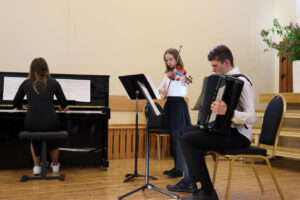 Pasākumu uzsāka Jāņa Mediņa mūzikas skolas flautu kvartets, kas ar pirmo pūtienu kā maigs un tomēr arī mirdzošs vilnis mūs ieskāva un pilnībā apbūra.