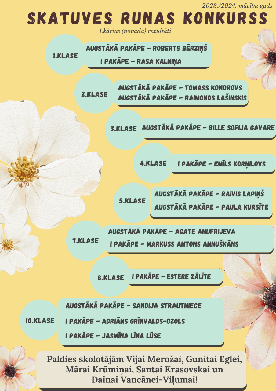 Silti paldies vārdi skolas skolotājiem par ieguldīto darbu skolēnu sagatavošanā, norišu vadīšanā, darbu labošanā un līdzi jušanā!