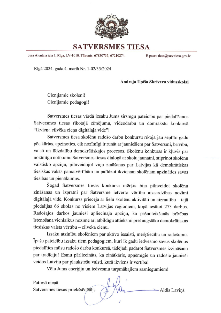 - Upīša Skrīveru vidusskolas finanšu pratības pulciņa skolēni piedalījās JA LATVIA finanšu un radošuma konkursā “Mana vārdnīciņa”.