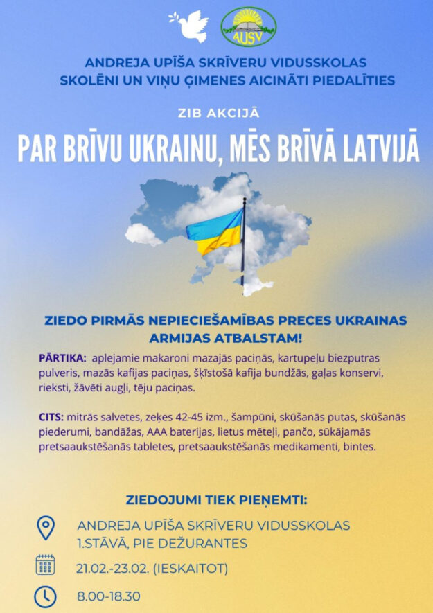 Krievu valodas valsts 25. olimpiādes novada (2. posma) kārtā piedalījās 11 skolēni no Andreja Upīša Skrīveru vidusskolas. 4 skolēni ieguvuši godalgotas vietas, bet ieguvēji noteikti ir visi, un uzkrātā pieredze noderēs turpmāk. No Aizkraukles novada uz valsts posma kārtu tika uzaicināts piedalīties 10.a klases skolēns Roberts Balodis. Valsts posma kārta notika klātienē š.g. 9. janvārī. Olimpiādes tēma bija “Ceļošana mums atklāj daudz, liek domāt un sapņot par daudzām lietām.” (D.Lihačevs). Skolēniem bija jāveic radošs rakstu darbs un jāiesaistās diskusijā.