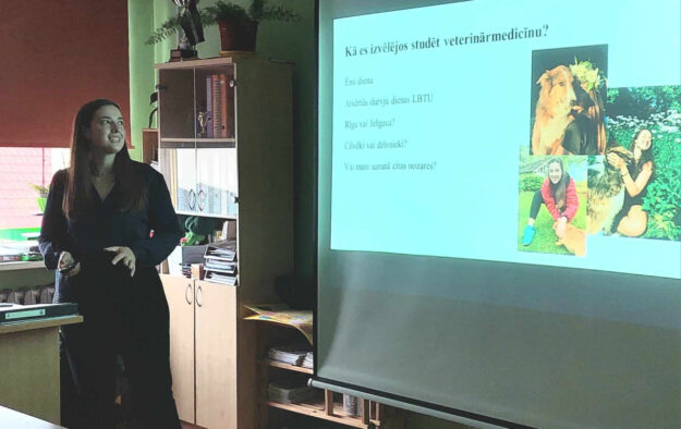 2023.gada 18.oktobrī pie 9.b un 10.b klases ciemojās topošā veterinārārste, LBTU 6. kursa studente Anna Barkāne. Viņa pastāstīja, kāpēc izvēlējās kļūt par veterinārārsti, kuros tehnikumos un augstskolās var apgūt šo profesiju. Uzzinājām, kuri mācību priekšmeti jāapgūst pamatīgāk, kādas īpašības sevī jāattīsta un jānostiprina. Veterinārmedicīnas studentam jāmīl dzīvnieki, jāvēlas tiem palīdzēt, jāspēj plānot savu laiku, izvirzot prioritātes, jābūt atbildīgam un pašdisciplinētam. Lasīt tālāk …