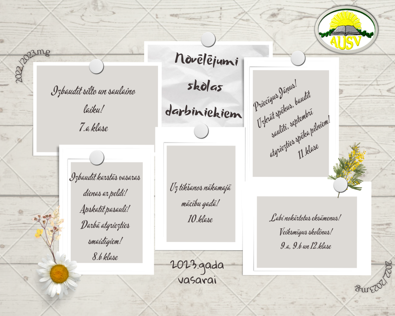 Lai visu gadu ir tikpat saulains noskaņojums, pozitīva gaisotne un vēlme augt!