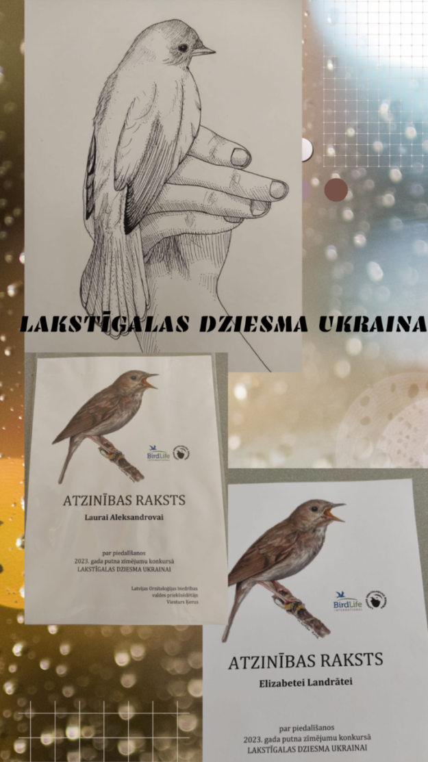 Zīmējumu konkursā, ko organizēja Latvijas Ornitoloģijas biedrība, piedalījās 9.b klases skolniece Laura Aleksandrova un 8. b klases skolniece Elizabete Landrāte. Šī gada putns ir lakstīgala, kas ir arī Ukrainas nacionālais putns. Skolēni tika aicināti radoši izpausties un veltīt zīmējumus šai tematikai. Abas skolnieces saņēma atzinības rakstus par iesniegtajiem darbiem.