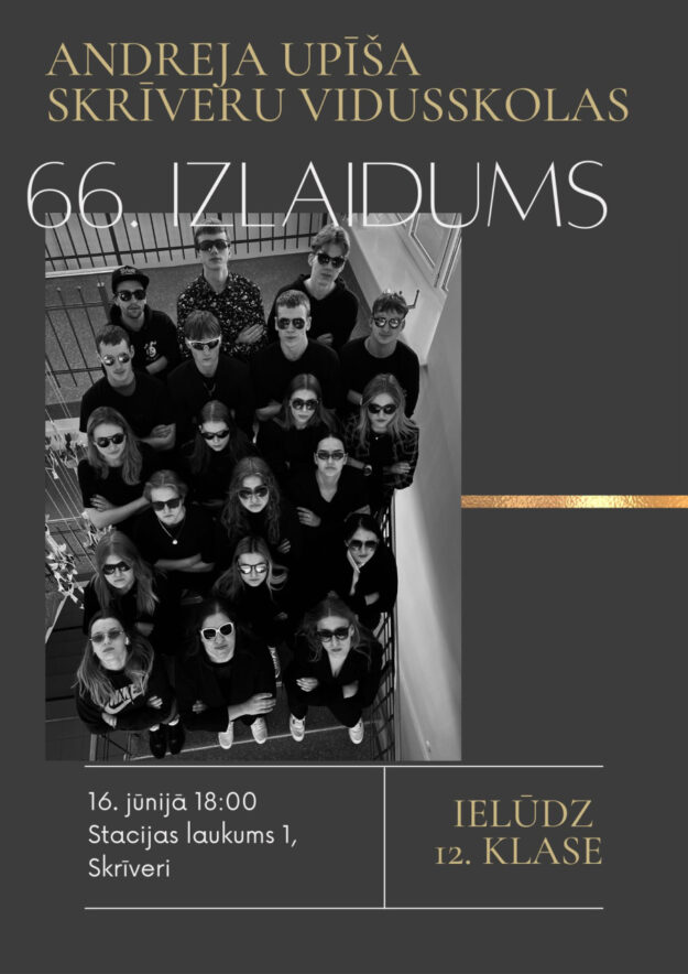 2023. gada 16. jūnijā Skrīveros 12. klase svin savu izlaidumu. Apsveikumi, vēlējumi, priekšnesumi-tas viss atgādina, ka ir skolas dzīves posma noslēgums. Vidusskolas izlaidums-tas ir vienreizējs pasākums dzīvē. Izlaidums- tās ir krustceles, kurās ir jāizvēlas tālākais ceļš. Skola ir bijušas otrās mājas, kuras būs jāatstāj.