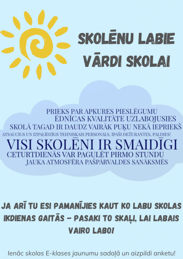 2022.gada 20.oktobrī mūsu skolā ieradās projekta ‘’Esi Līderis!’’ pārstāvji, lai iepazīstinātu 10. klases skolēnus ar profesionālās pilnveides izglītības programmu vidusskolēniem.