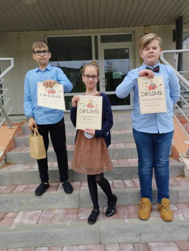 Visi trīs mūsu skolēni uzstājās lieliski- pārliecinoši un izteiksmīgi. Trešo vietu ieguva Agate Anufrijeva (5.b), kas aizkustinoši nolasīja fragmentu par pazudušo suni. Matīss un Markuss ieguva atzinības diplomus.
