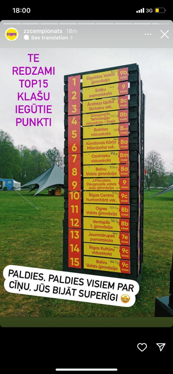 Klases ātrums bija ļoti liels, mūs apsteigt spēja tikai 9. klašu skolēni. Rezultātā ieguvām godpilno 3. vietu ( no 120 klasēm). Kopībā ir spēks! Paldies Ričardam un Diānai par klases aizvadīšanu līdz finālam!