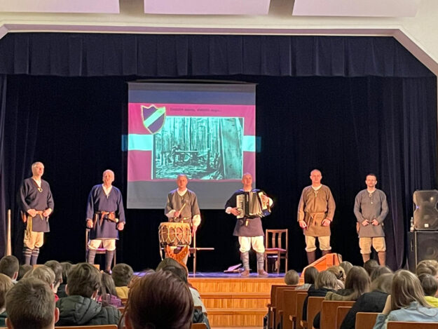 13.05. nav Latvijas dzimšanas diena vai kāda cita piemiņas diena. Taču šajā laikā, kad pasaulē plosās karš, skolēniem svētīgi ir atcerēties mūsu senču izlietās asinis par brīvību. To mums palīdzēja folkloras ansamblis ”Vilki”. Pateicoties viņiem, izstaigājām pa Latvijas vēstures takām, izdziedājām karavīru dziesmas, noklausījāmies latviskos mūzikas instrumentu, izpētījām senos ieročus. Paldies “Vilkiem”!