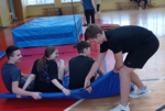 Tad skolēni saņēma darba lapas un devās uz sporta stundu. Pēc kārtīgas iesildīšanās – skolēni pildīja darba lapu, kur praktiski bija jāpārvar miera berzes spēks un tas jāpārveido slīdes berzē.