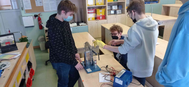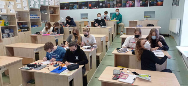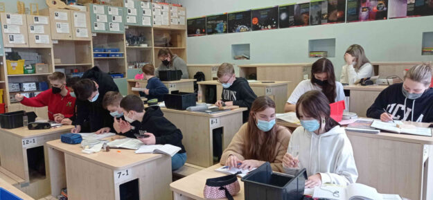 8.klases skolēnus pārsteidza neparasts laboratorijas darbs – spiediena pētīšana, pārvietojoties pa stacijām, kurās bija jāveic kāds noteikts uzdevums.