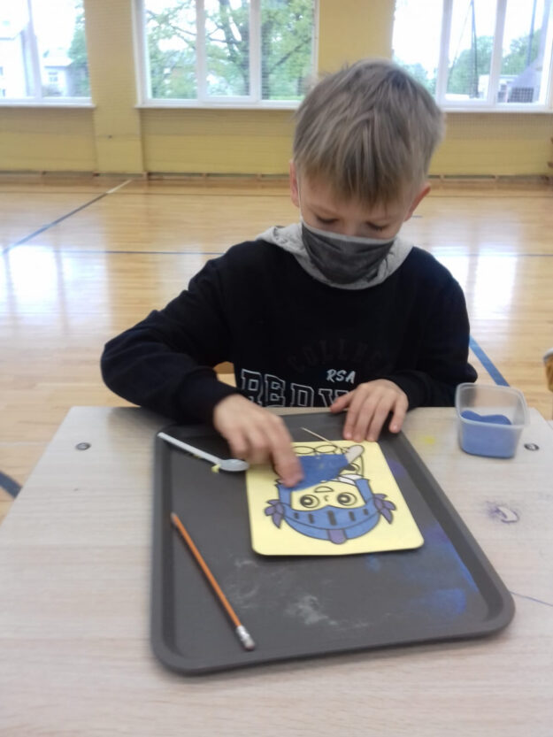 28.05. 1.-4. klašu skolēni , pateicoties projektam “Latvijas skolas soma”, piedalījās mākslinieces Daigas Kaufmanes radošajā darbnīcā ”Glezniecība-tradicionāli un netradicionāli”. Pēc nelielām pārrunām par glezniecību, skolēni praktiski mēģināja saskatīt dažādus tēlus krāsainajās smiltīs. Vēlāk katrs veidoja no smiltīm glezniņas. Bērniem ļoti patika šāda nodarbe. Tā rosināja iztēli, iepazīstināja skolēnus ar vienu no netradicionālās glezniecības veidiem.