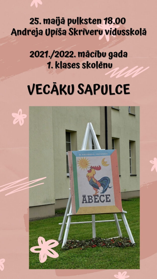 25. maijā plkst.18.00 uz klātienes tikšanos tiek aicināti Andreja Upīša Skrīveru vidusskolas nākamo pirmklasnieku vecāki.