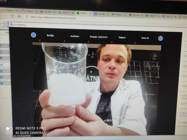 Projekta”Latvijas skolas soma”interaktīvā nodarbībā 29.martā 6.b klases skolēni uzzināja, kā mūsdienās zinātne palīdz veidot filmas un teātra izrādes. Par pamatu ņemot Latvijas filmu “Dvēseļu putenis”, tika rādīts, kas nepieciešams, lai radītu ticamus efektus un pēc iespējas precīzāk attēlotu filmā redzamos notikumus. Skolēni uzzināja, kā gatavo mākslīgās asinis, mākslīgo sniegu, rētas, speciālus degošos šķidrumus, kā dažādu darbību veikšanai trenējas kaskadieri . Tas viss nebūtu īstenojams bez ļoti precīziem aprēķiniem un specifiskām zināšanām. Ieskatījāmies aizkulisēs, lai saprastu, kā rodas kino un teātra māksla. Nodarbībā skolēni varēja brīvi komunicēt ar programmas vadītāju, uzdot jautājumus un saņemt atbildes uz tiem. Daži eksperimenti ir atkārtojami mājās.