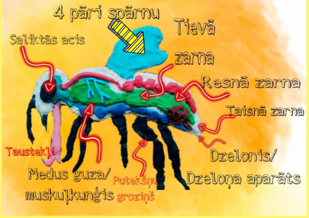 Astoto klašu skolēni, noslēdzot mācīšanos par posmkāju uzbūvi, saņēma uzdevumu izveidot viena dzīvnieka modeli un norādīt uzbūves sastāvdaļas. Šādu uzdevumu skolēni veica pirmo reizi un bija patīkami redzēt, cik daudzveidīgi bija iesniegtie darbi. Daudzos darbos par pamatu tika ņemta plastmasas pudele un tajā ievietotas uzbūves detaļas , kas veidotas no plastilīna. 8. a klases skolēni Ludvigs Bērziņš un Markuss Grigorjevs izvēlējās apgūt ko jaunu un veidot kustīgus 3 D modeļus. Viņi to apguva pašmācības ceļā, sazinoties un sadarbojoties viens ar otru. Radošs darbs bija arī 8.b klases skolniecei Esterei Appenai, viņa veidoja vairākus bites modeļus no plastilīna un apvienoja tos prezentācijā. Attēlā redzams Esteres darbs, bet videoklipā- Markusa darbs