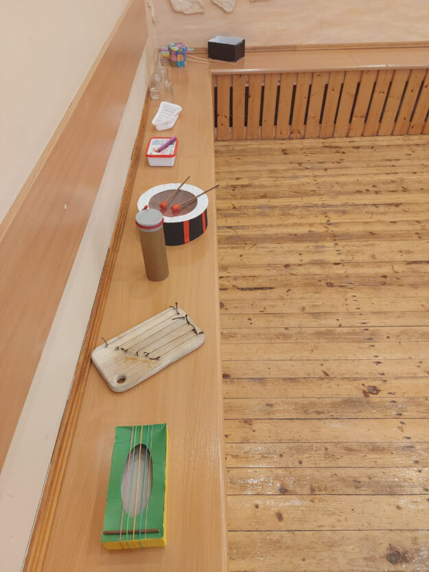 Tā mājās katrs prātojām un darbojāmies. Un tad nāca lielā prezentēšana, kad katrs par savu instrumentu stāstīja un to demonstrēja. Vispopulārākās bija bungas, grabulīši un pie kartona kastes piestiprinātas gumijas vai metāla stieples. Vēl bija arī dažas pana flautas.