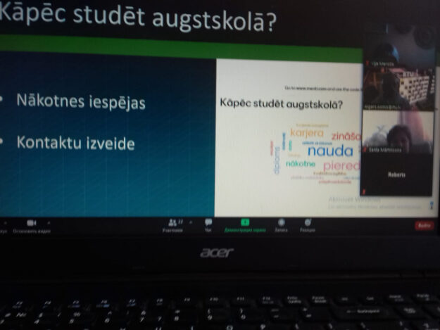 Šodien, 16. februārī, 12.klases skolēniem Zoomā notika tikšanās ar bijušo mūsu skolas absolventi –tagadējo LU studenti Agati Albekeiti un studentu pašpārvaldes vadītāju Līgu Gavari par izglītības iespējām Latvijas universitātē, īpaši par ģeogrāfijas un zemes zinātņu fakultāti. Zoomā pieslēdzās 26 dalībnieki. Skolēni neklātienē pabija LU, iepazinās ar studentu dzīvi, nodibināja kontaktus ar studentiem, uzzināja skolēnu iespējas jau tagad, gatavojoties kļūt par studentiem. Karjeras dienas GZZF norisinās no 15.-18.02. katru vakaru plkst 19.00 Google. Meet vidē, bet 16.02. ar saiti ej.uz/gzzfkd