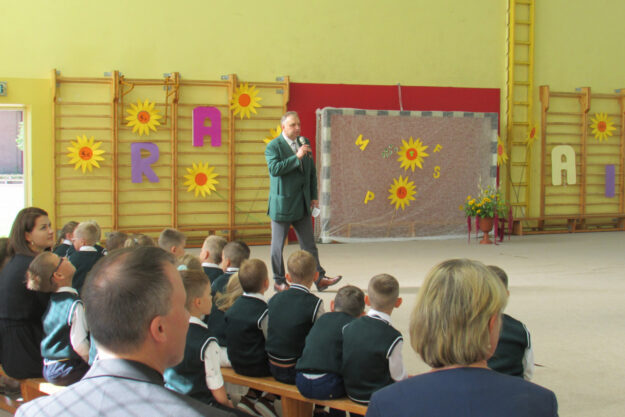 Silts un saulains 1.septembra rīts. Skrīveros valda rosība. Skolēni pēc gara laika atgriežas skolā. Viss ir pārvērties: skaisti, izremontēti gaiteņi, četri jauni skolotāji, ziedi un smaidīgas sejas. Pirmā visiem ir audzināšanas stunda, kurā iepazīstam jaunos skolēnus, dalāmies ar brīvdienu piedzīvojumiem, veidojam nākotnes mērķus un stratēģijas…Tāds skanīgāks šogad 1.septembra rīts ir pirmklasniekiem. Viņus sagaida Tipsis un Topsis, uzdāvinot burvju atslēgu uz Gudrības pasauli. Taču viltīgā ragana to nozog. Lai atslēgu atgūtu, pirmklasniekiem jāuzmin apsveikumu telegrammu autorus…..Protams, viss beidzas laimīgi un noslēgumā skolēni izmanto Domes dāvāto dāvanu-rotaļnieka-klauna rotaļas un burbuļpūtēja atrakcijas.