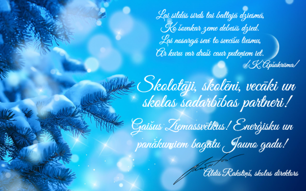 Skolas direktors sirsnīgi sveic visus skolas skolēnus,