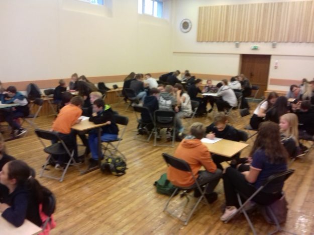 Patriotisma mēnesi mēs ievadījām ar erudītu konkursu “Vai jau visu zini par Latviju?” Konkursā piedalījās 5.-12. klašu skolēni. Katru klasi pārstāvēja četri erudītākie dalībnieki. Jautājumi tika sagatavoti no vairākām jomām par Latviju. Te bija iekļauta biologija, ģeogrāfija, vēsture. Kā var mīlēt to, ko nepazīst? Tātad , ja mēs mīlam savu Dzimteni, tad to jāiepazīst……No sirds priecājamies par tiem bērniem, kuri spēja savākt vislielāko punktu skaitu! Pamatskolas grupā: 1.vieta – 8.b, 2. vieta – 8.a, 3.vieta – 7.a. Vidusskolas grupā: 1.vieta – 11.kl., 2. vieta – 10.a, 3.vieta – 9.kl.