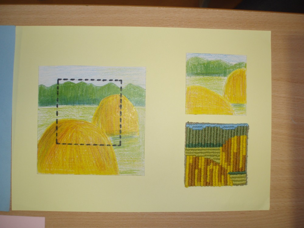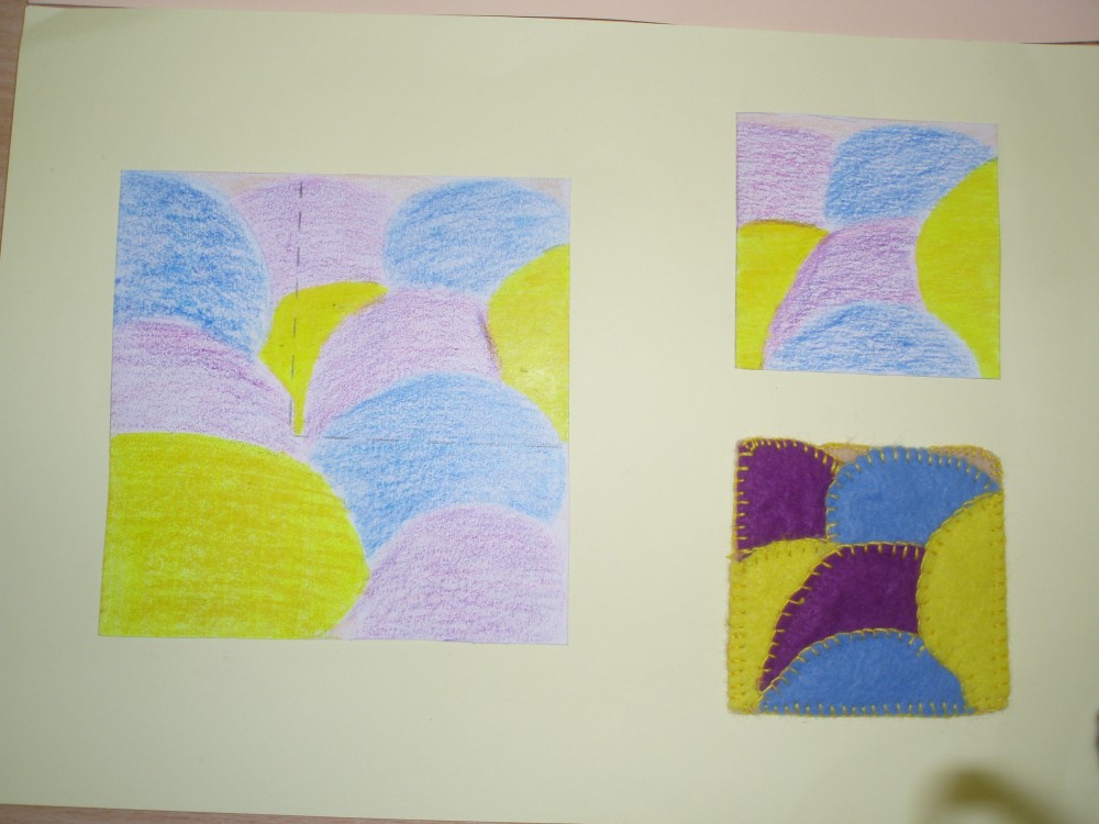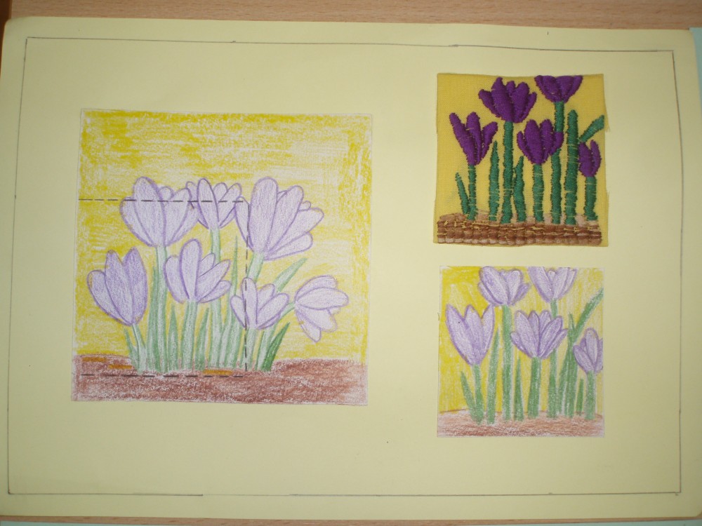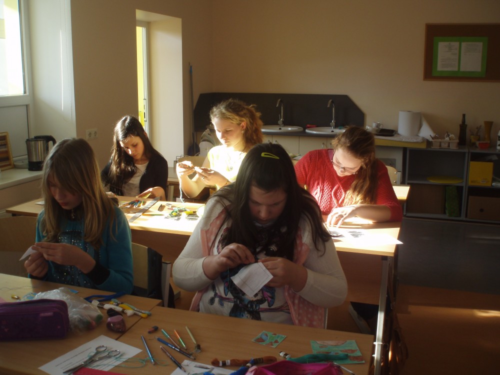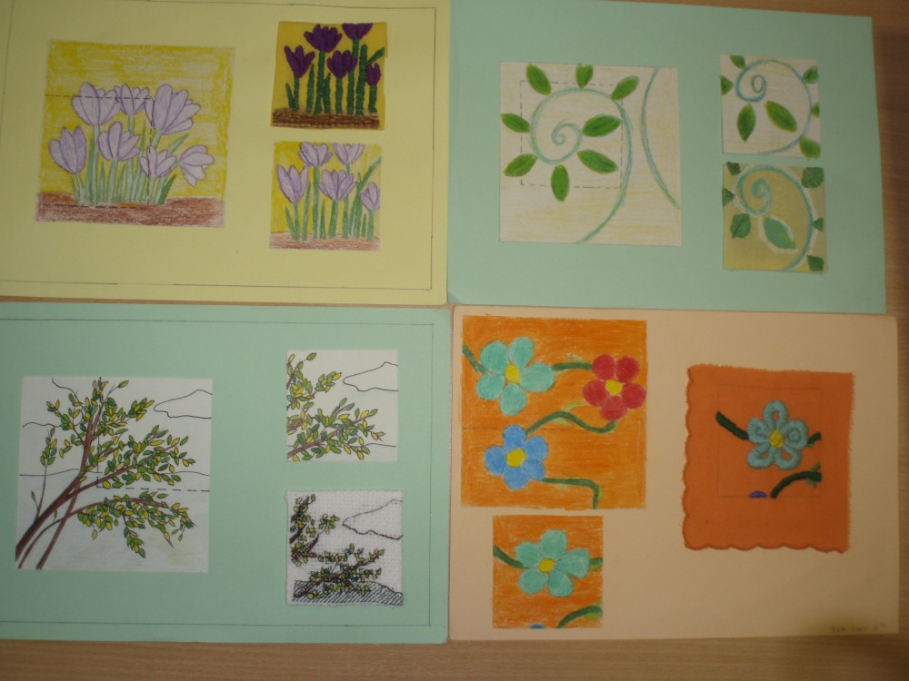 Meitenēm tika iedoti melnbaltu attēlu fragmenti, no kuriem smelties ideju un izveidot priekšmeta krāsainu skici. Līdz ko skice bija uzzīmēta, varēja ķerties klāt pie priekšmeta tehniskā izpildījuma. Idejas bija interesantas, radošas un arī rokdarbu veidi izmantoti dažādi: filcēšana,klājdūriena, cilpu dūriena un krustdūriena šūšana,kā arī tamborēšana. Uz adatu spilventiņiem saplauka pirmie pavasara ziedi, pumpuri un lapas, paloja ūdeņi un ziedēja ābeļziedi. Zīmējumi un izstrādātā priekšmeta fragments nobeigumā bija jānoformē uz A-4 piemērotas krāsas kartona.