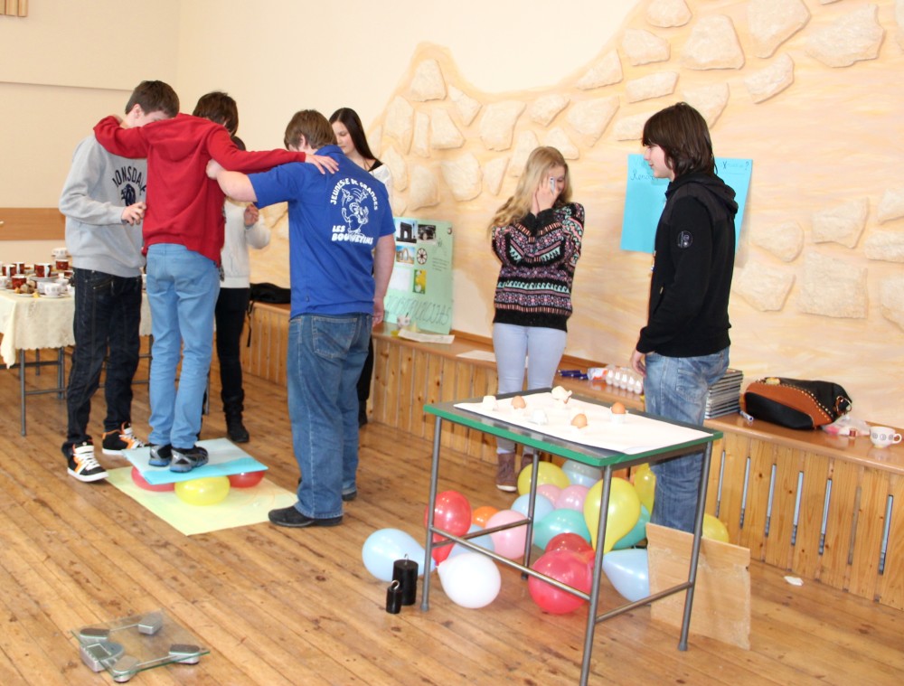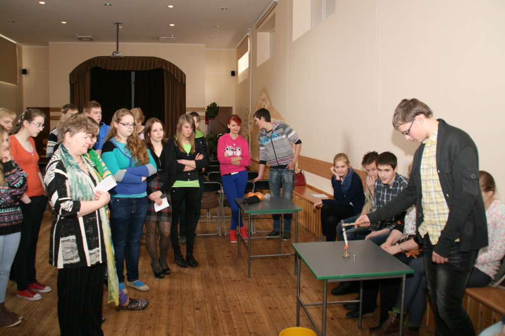 Uzaicinājumam atsaucās 4 skolas: Aizkraukles novada ģimnāzija, Aizkraukles 1. vidusskola, Seces pagasta pamatskola un Neretas Jāņa Jaunsudrabiņa vidusskola, kā arī divas mūsu skolas komandas. Daugavpils Universitātes Bioloģijas fakultātes darbinieki skolēniem saistoši pastāstīja, kā savu aizrautību kādā no zinātnēm var pārvērst par profesionālu nodarbošanos. Tālāk sekoja pati interesantākā daļa- katras skolas komanda demonstrēja citiem savu mājasdarbu- iepriekš sagatavotu eksperimentu. Līdzsvarojot spēkus, ola nesaplīst zem 10 kg smaguma, arī balons var noturēt cilvēka svaru. Vai parafīns var pats uzliesmot telpā? Tas katram jāredz pašam!