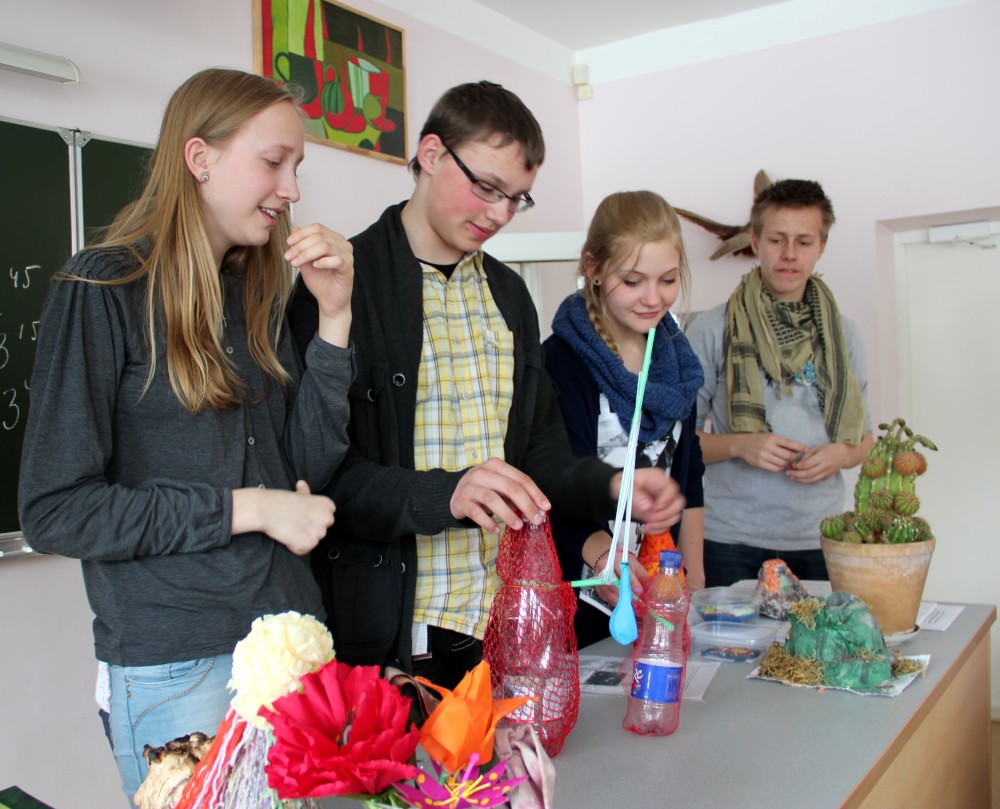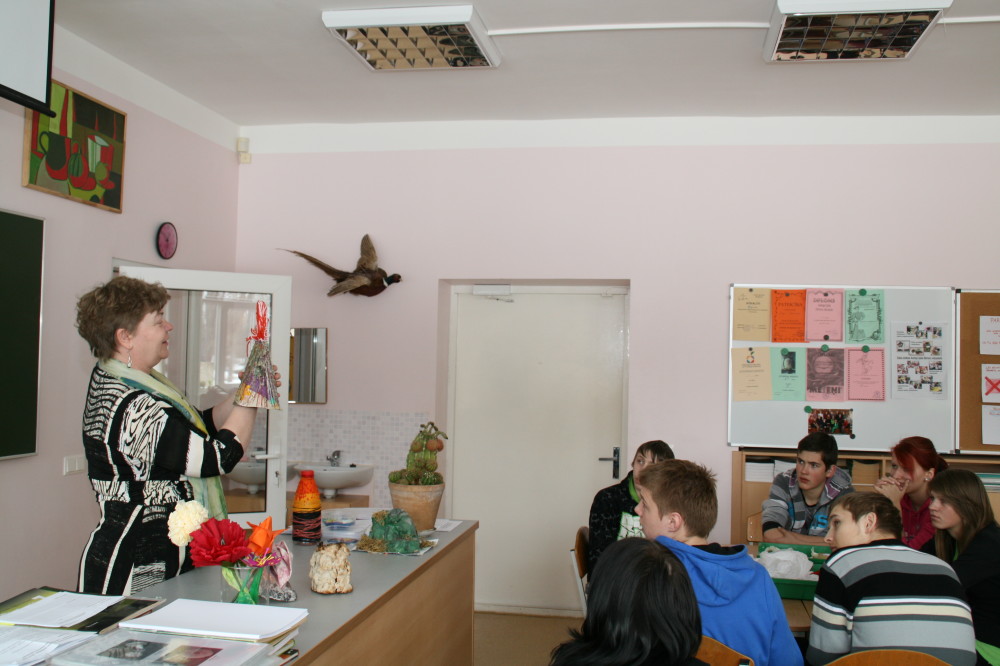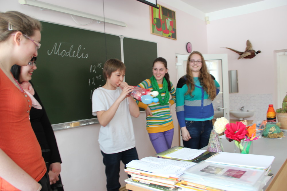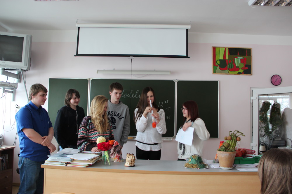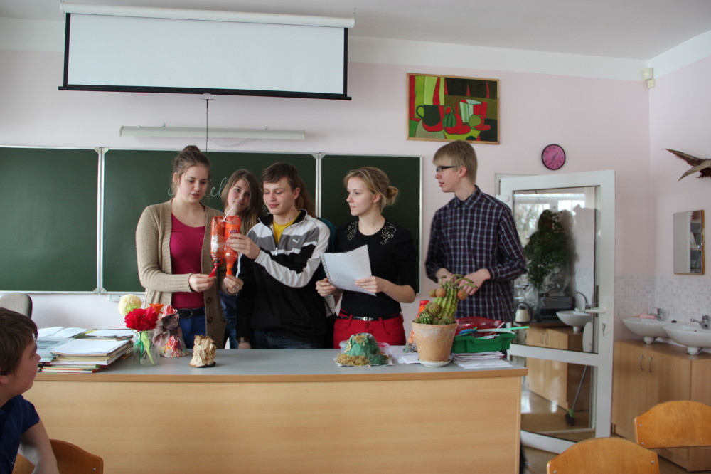 Bioloģijas skolotāja D.Martinsone demonstrēja dažādus modeļus, ko skolēni pagatavojuši iepriekš, šajā reizē skolēniem pēc dotā apraksta pašiem bija jāizveido cilvēka plaušu vai hidras modelis un jānodemonstrē, kā tas darbojas. Visi izvēlējās veidot plaušu modeli, katrai komandai bija sava izdoma un radošā pieeja.