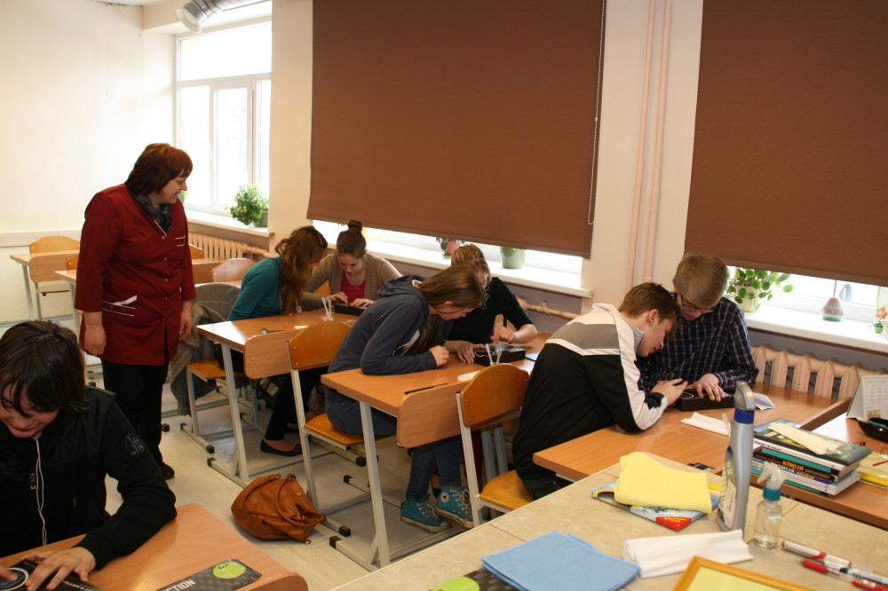Ķīmijas kabinetā skolēniem bija iespēja uzzināt brīnumainas lietas par nanozinātnes radītajiem jaunajiem materiāliem, kas 21.gadsimtā ienāk mūsu dzīvē. Skolēni paši varēja , izmantojot savu berzes siltumu, ieraudzīt uz melna kartona slēptus attēlus-cilvēka plaukstas kaulu rentgenattēlu, pirkstu nospiedumus un mikroshēmas. Uzzināja par viedajiem (gudrajiem) materiāliem-piemēram metāla stieplīti, kura pat salocīta spirālē siltumā spēj atcerēties savu ieprogrammēto formu-taisnu līniju. Skolēniem patika arī paspēlēties ar ūdens pērlītēm, kas veidojās uz neslapinoša auduma ar nanoaizsargkārtiņu.