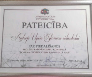 Priecājamies par skolēnu azartu un vēlmi piedalīties intelektuāla rakstura konkursos, tādejādi pierādot, ka Andreja Upīša Skrīveru vidusskolā veidojas erudītas un daudzpusīgas personības.