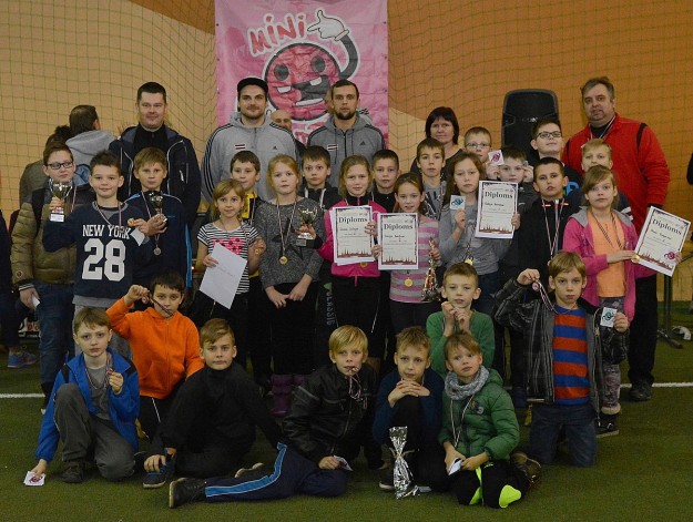 Četri kausi Ziemassvētku mini handbola turnīrā.